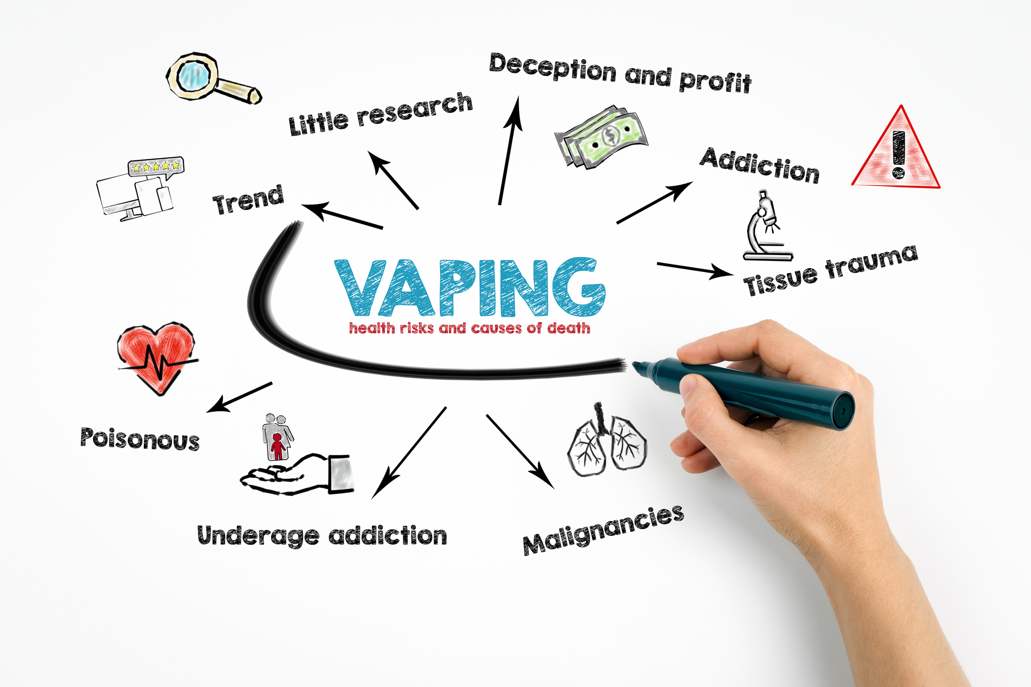 No. While some products differ from cigarettes, vape aerosol can contain nicotine and other harmful chemicals. Our lessons focus on informed, age‑appropriate facts from reputable sources.